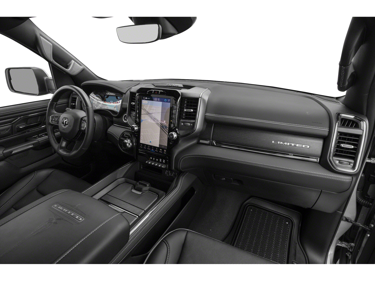 Leather Seats, Navigation, 4x4, Heated Driver Seat, Heated Rear Seat Ram Limited with Ivory White Tri-Coat Pearlcoat exterior and Black interior features a V6 Cylinder Engine with 395 HP at 5600 RPM*.